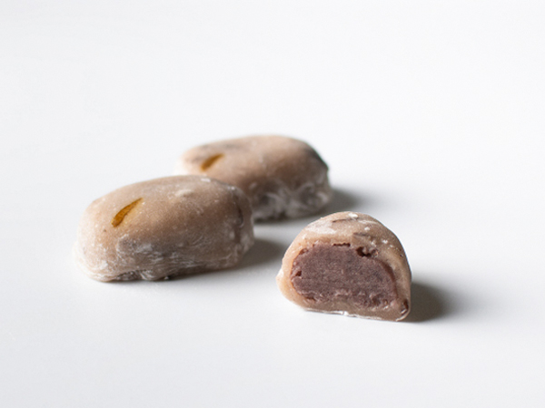 小豆を煉りこんだ餅生地で小豆こしあんを包み、一筋の焼印で猪の牙を表した「亥の子餅(いのこもち)」